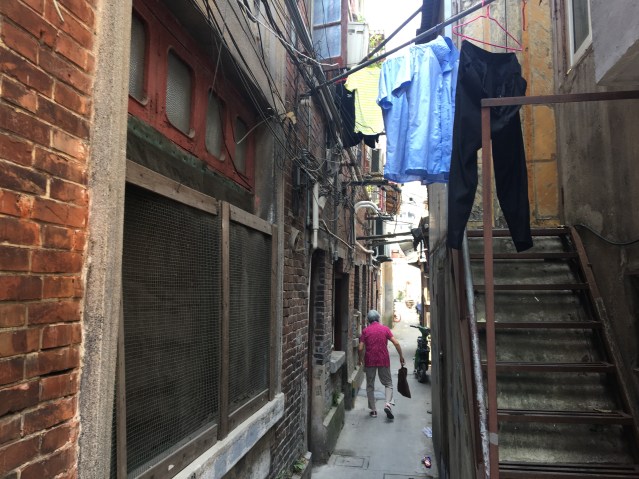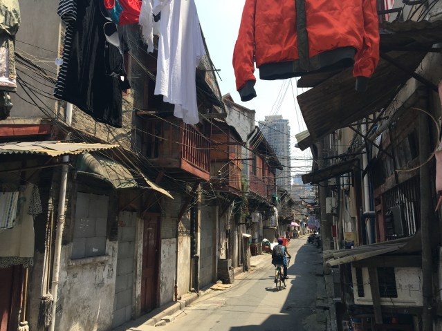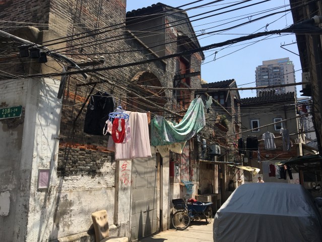 Bamboo poles with laundry rest on the eaves of houses on the opposite sides; the sky is permanently obstructed by the drying underpants, foot-binding strips and cloth diapers. Lazy housewives don’t even bother to wring the laundry before hanging it. Pedestrians curse the residents in their homes, who loudly return the abuse. There is no end to quarreling until the sound of gongs announces the magistrate is on his way. Yamen runners rush ahead to clear the way yelling: “Take down your wash!” as if there was a fire. People rush to drag their laundry poles back into their houses and grab any stray clothing that drops; those not quick enough get a public scolding. (Cited in Knyazeva & Sinykin, Shanghai Old Town: The Walled City)