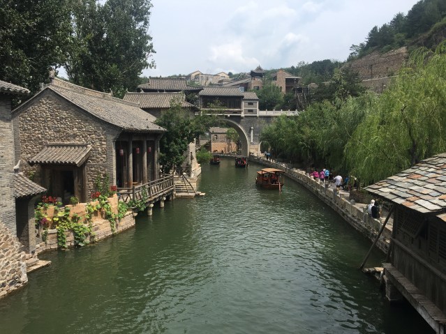 But there is another phenomenon taking place which goes some way toward offsetting the loss of China’s original walled cities. Oxymoronic as it sounds, it is the explosive growth of ancient canal towns. The fashion took off in the early 2000s in the Shanghai vicinity of Jiangsu and Zhejiang provinces, most notably Zhouzhuang (周庄) and Wuzhen (乌镇), though southern China is populated with scores of them. The towns can be dated back hundreds of years or even one or two millennia, but only recently has the concept of turning these picturesque old villages into major tourist destinations caught on in a big way, perhaps on the model of long-established haunts such as Lijiang and Dali in Yunnan Province or Pingyao in Shanxi Province. Decrepit structures were repaired and refurbished and the towns expanded beyond their boundaries with new buildings in the same style, so that it’s no longer possible to tell where the original ends and the fake begins. Rumor has it the towns’ inhabitants have been told to make themselves more visible through their windows and ape their traditional lifestyle for the thousands of tourists who mill through the narrow streets every day; rumor also has it they were hired and brought in specifically for the job. There are also “ancient” water towns on the same model sprouting up from scratch, such as Gubei Water Village (古北水镇) near the Simatai Great Wall outside of Beijing, constructed only a few years back. Great care is taken to make everything look authentically old to justify the high entrance fees. The crowds don’t seem bothered by the question of authenticity. If anything, the more impressive the simulacrum, the more they feel they are getting their money’s worth.